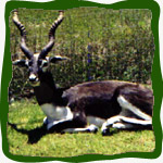 The average height of a black buck is 80-85cm, and its weighs around 40kg. A beautiful pair of horns adorn the male, and they grow by a node each year. The male wears a dark brown coat, while that of the female is a lighter shade of brown. The ventral portion of the belly, the legs and the chin of both the sexes are white. The black buck feeds mainly on grass and cereal crops and plays havoc in the villages near the National Parks. |