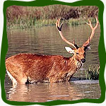 However, if one animal species were to represent Kanha, it would probably be the barasingha, or the swamp deer. The barasinghas at Kanha are unique, being the hard ground variety, which populate the large open tracts of grass amidst the forests of teak and bamboo. Twenty years ago, the barasingha was faced with extinction but some desperate measures including the fencing-off of some animals helped save them and again the air in Kanha bugle with their rutting calls.